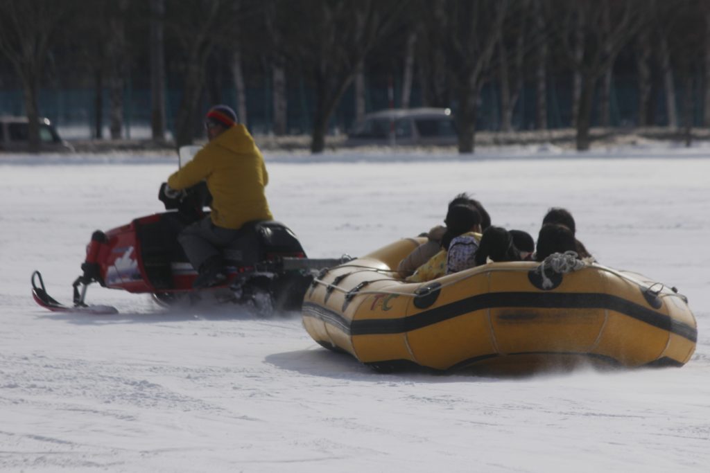 Also, snow rafting, where you can enjoy rafting on the snow, which is famous for river rafting. Enjoy the exhilarating speed of riding on a rubber board pulled by a snowmobile. Since you ride on a rubber board, even small children can have fun.