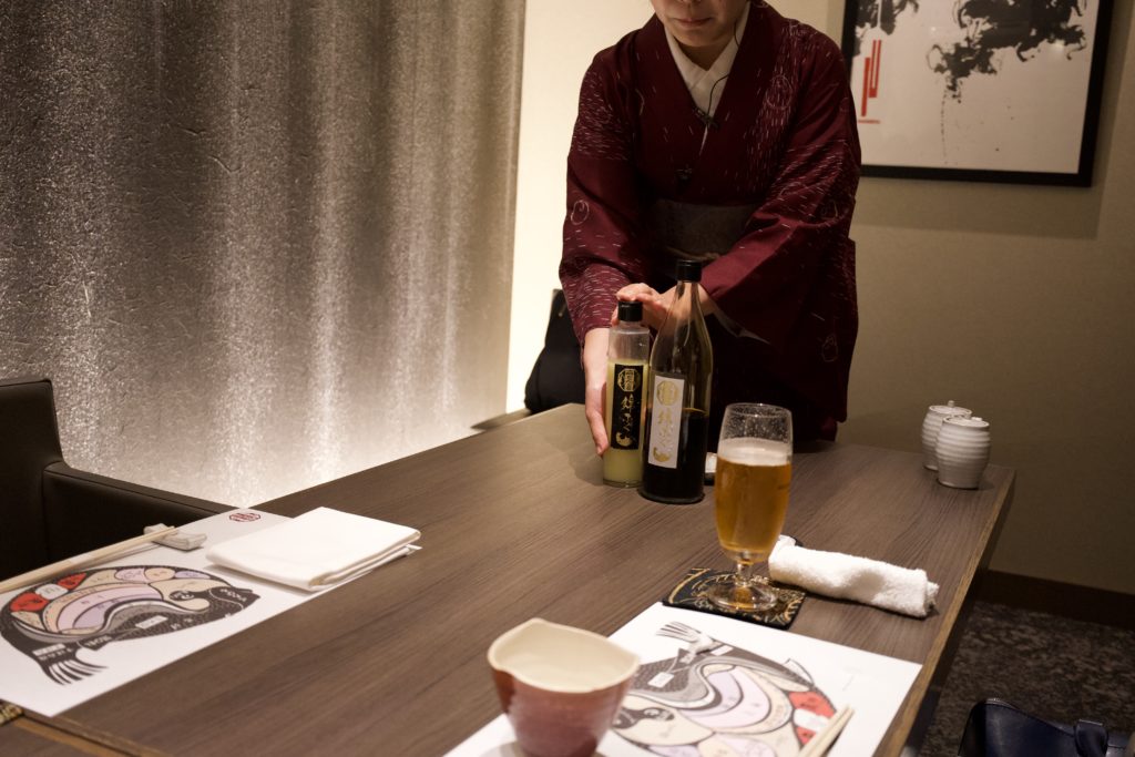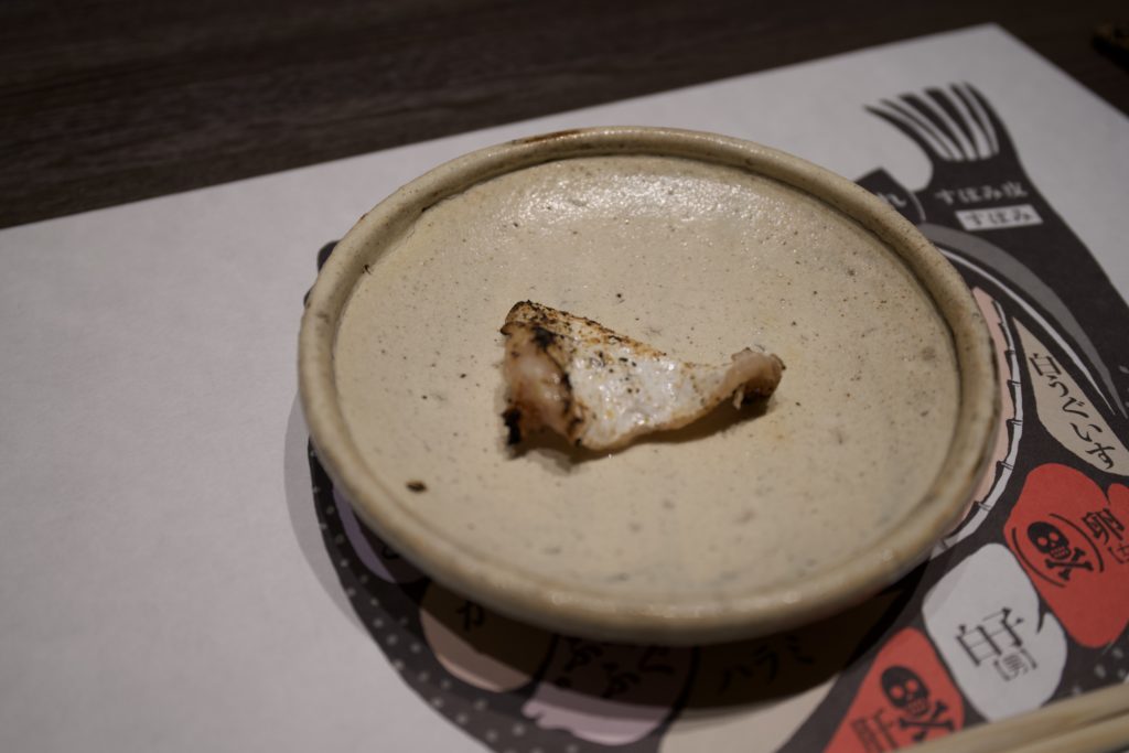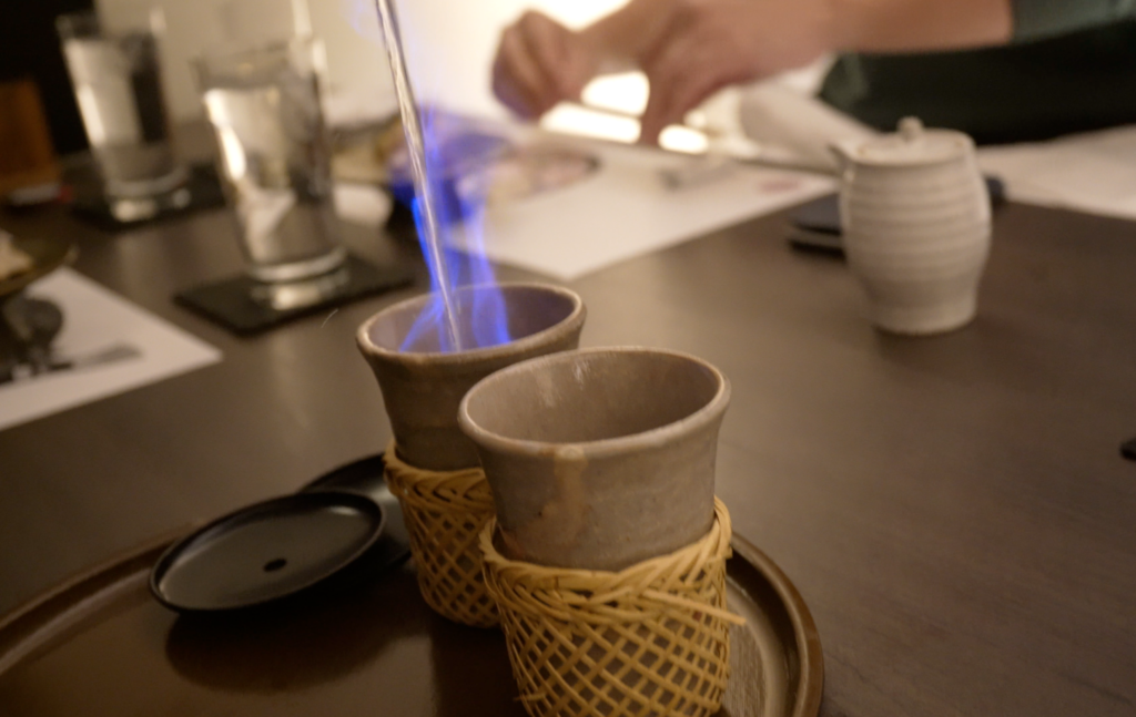 Speaking of fugu, they serve fin sake! I didn’t drink it, but the members I went with did. First of all, the presentation was amazing! Flames are lit. And the smell of the sake.