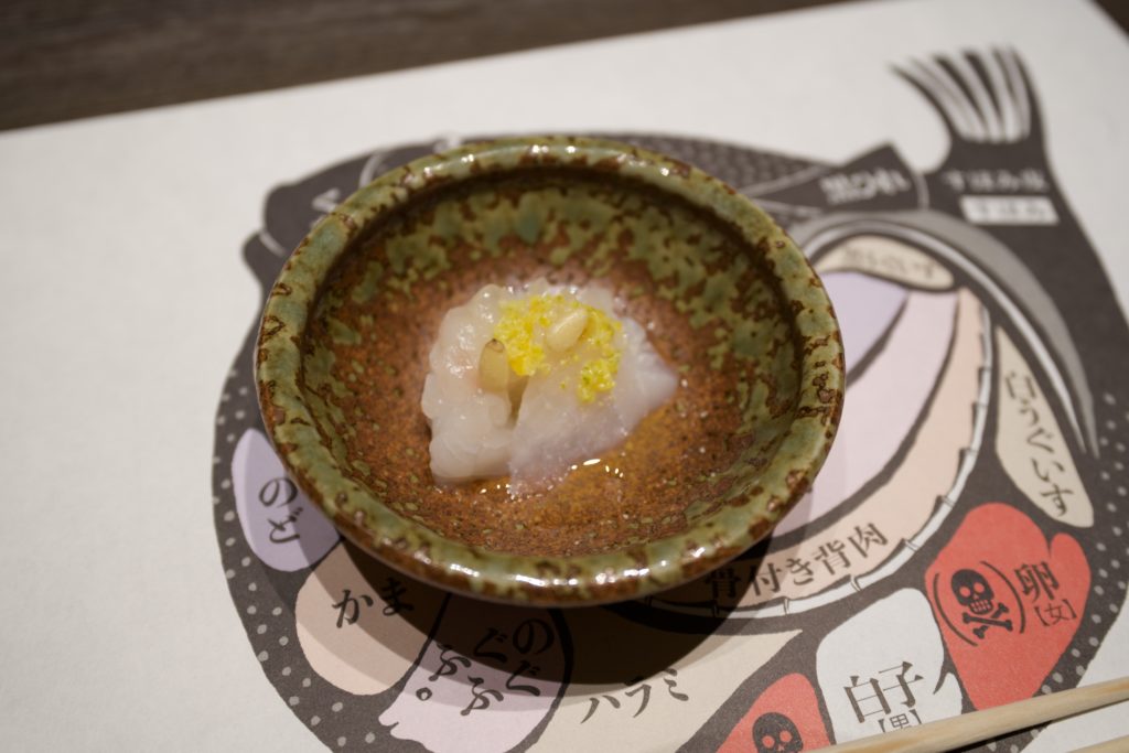 - Fugu kawa no Awayuki Jitate (freshly grated fugu skin)