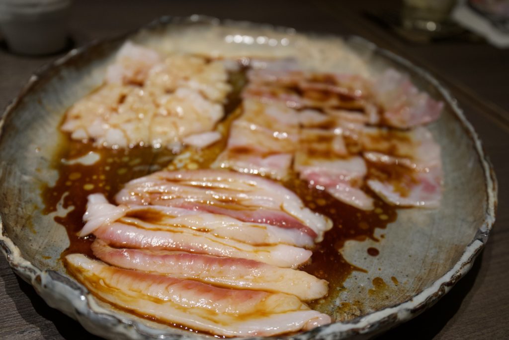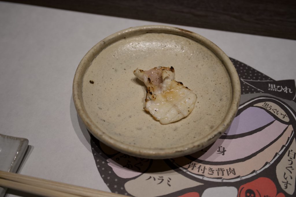 Anyway, you can eat various parts of the fugu. This time, we had skin/guts/toto-umi/uemi/kuro-uguisu.
