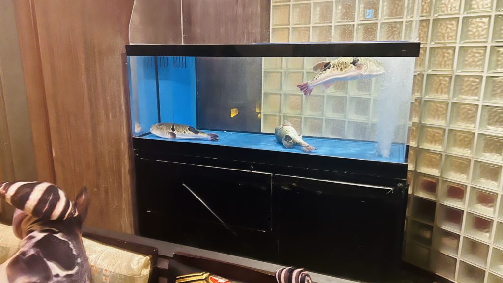 And there was a fugu swimming in an aquarium.