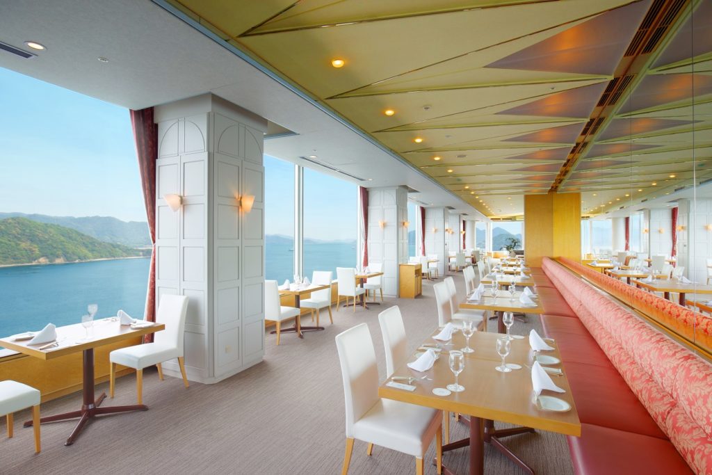 During the summer months, a swimming pool with a view of the Seto Inland Sea is also available.