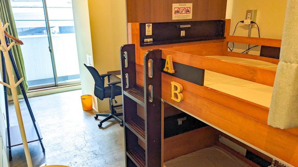 This hostel is located just a minute walk from the station, and all rooms are private rooms. Private rooms are sometimes difficult to find in this type of accommodation, so it is nice to have all private rooms. Rooms are furnished with bunk beds, work desks and chairs, microwaves, refrigerators, and washstands, so you can relax without worrying about other people back in your room.