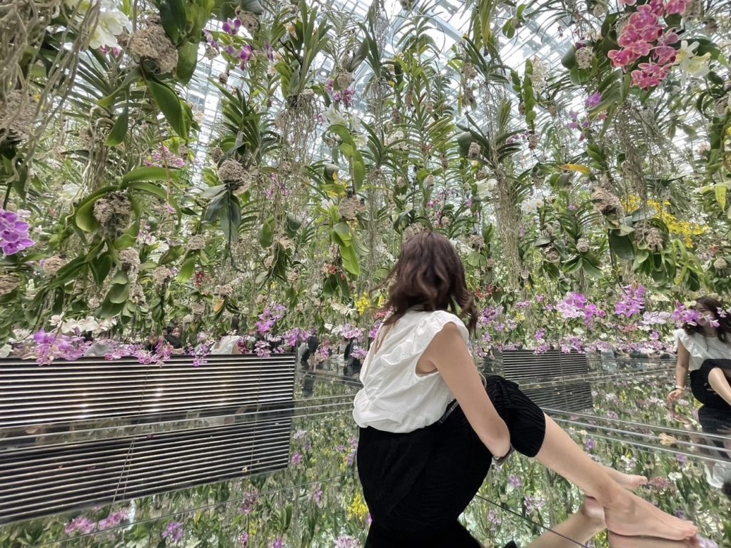 One of the most popular works at TeamLab Planet’s TOKYO is Floating Flower Garden, in which 13,000 orchids are hung from the ceiling and flowers fall on visitors’ bodies.Orchid flowers change color and shape over time, so you can experience a fantastic space.