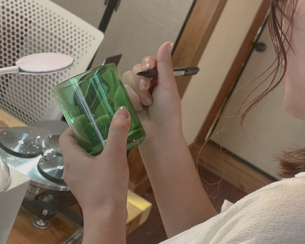 Listening to the craftsman’s explanation deepened my deep understanding of the delicate work and aesthetics of cut glass.And then you actually get to work.First, I choose a glass pedestal and draft the design.He then picked up tools to carve patterns on glass surfaces.