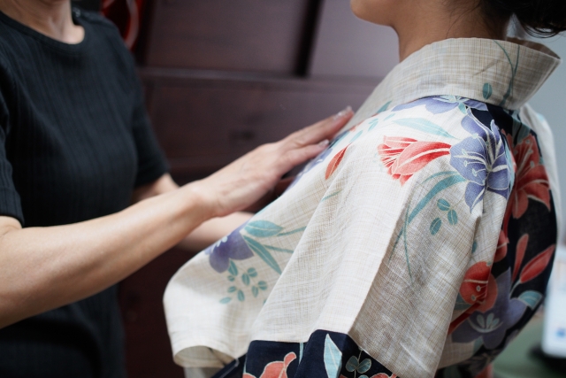 Compared to the kimono, the yukata requires fewer items, and some people can dress themselves.